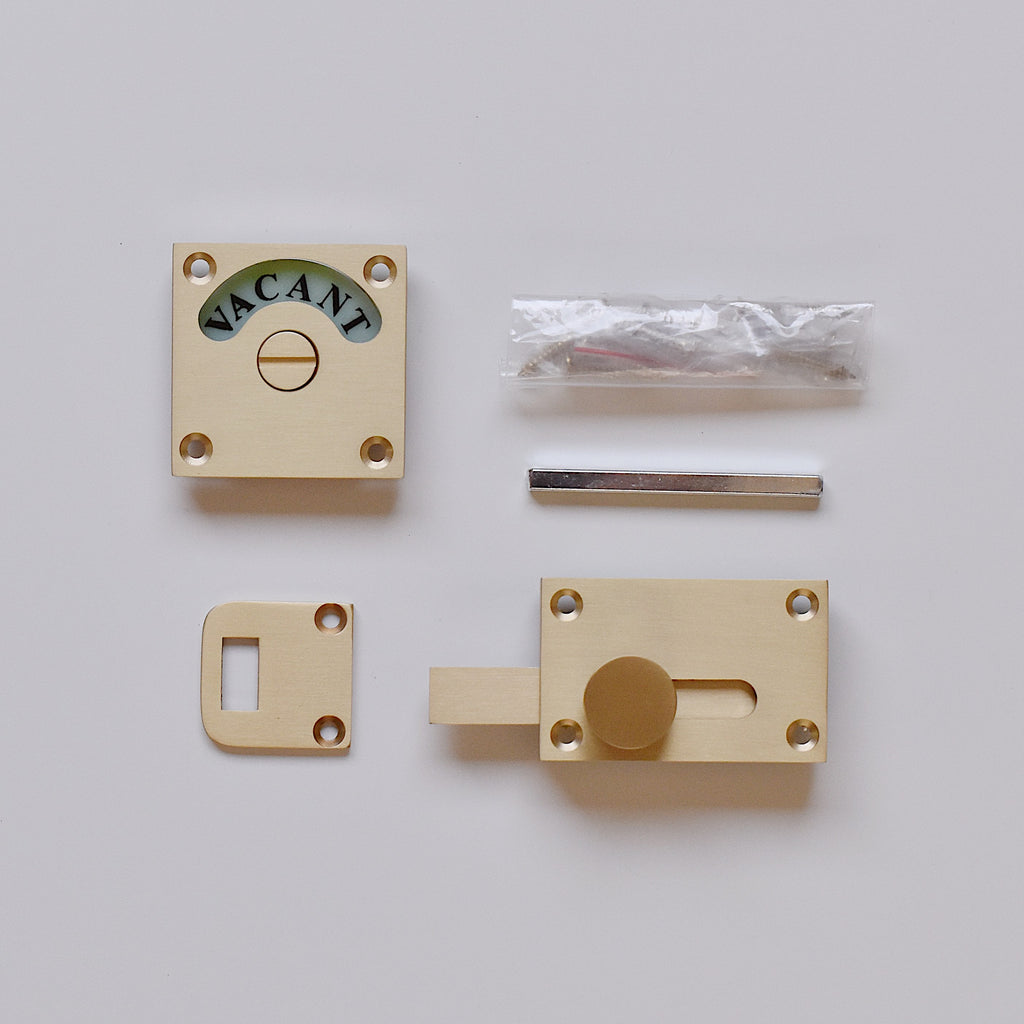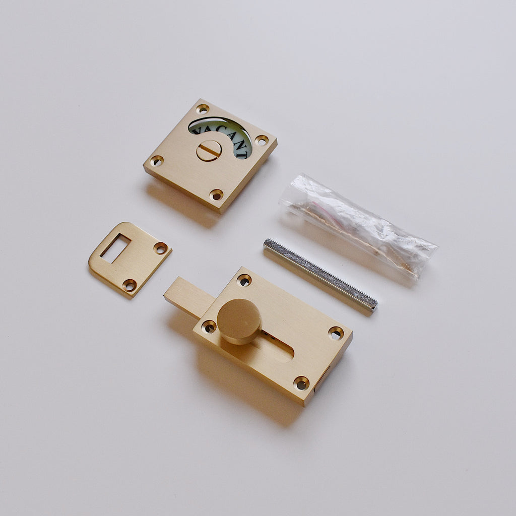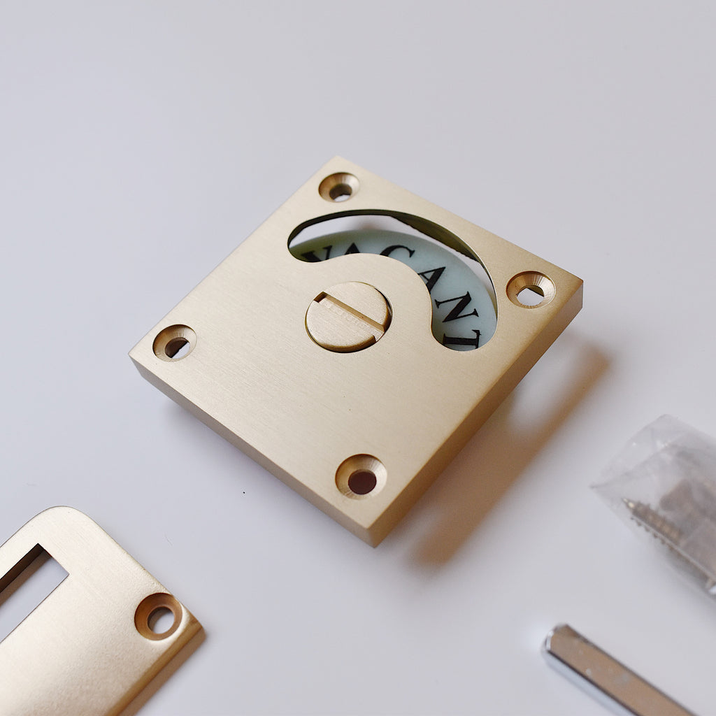 イギリス製のサテンブラス仕上げのスクエア表示錠。