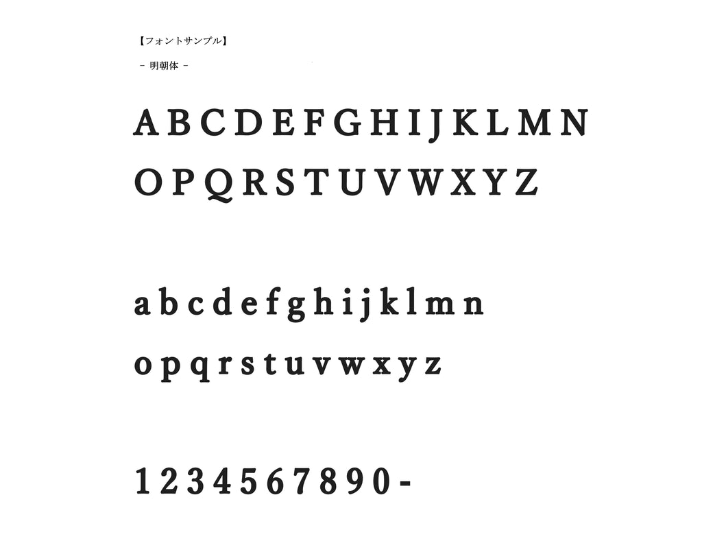 フォントは「明朝体・ゴシック体」、文字サイズは「30・35・40mm」となります。それぞれお好きなものをお選びください。